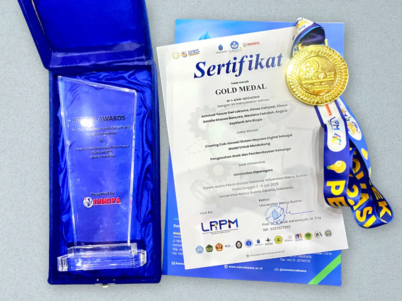 Another proud achievement has been attained by a student of the Faculty of Social and Political Sciences, Diponegoro University. Achmad Yassar Dwilaksono, a student of the Business Administration Study Program, successfully won a Gold Medal along with Special Awards at the 2025 National Innovation Week, held on July 2–3, 2025, at Mercu Buana University, West Jakarta.